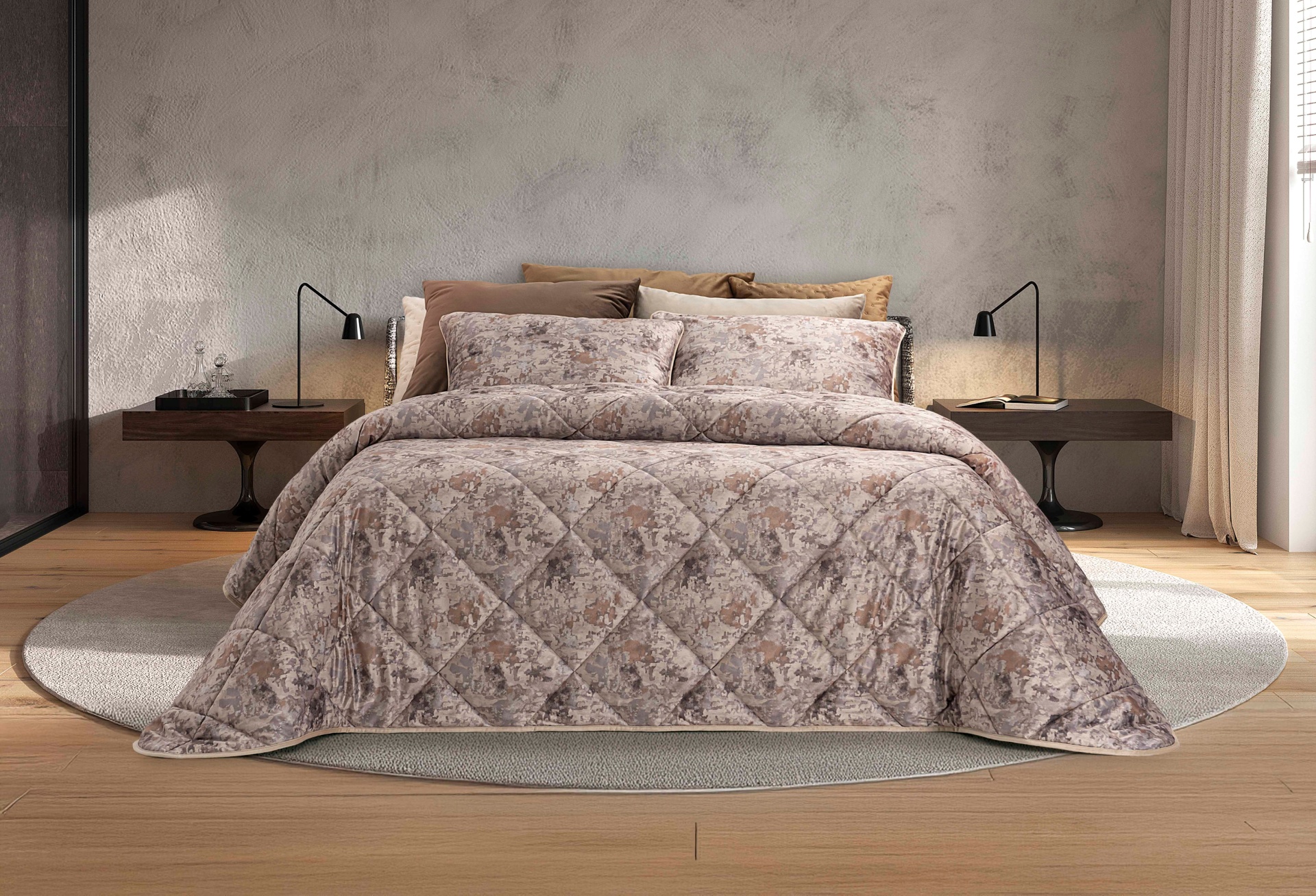 Edredon de casal em veludo com toque suave.