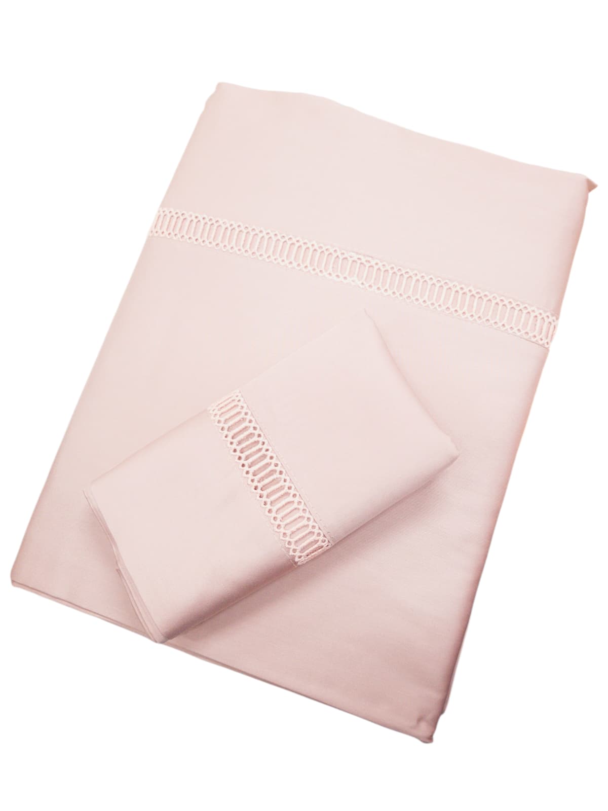 Jogo de cama de cetim, com bordado no lençol de cima e fronhas.