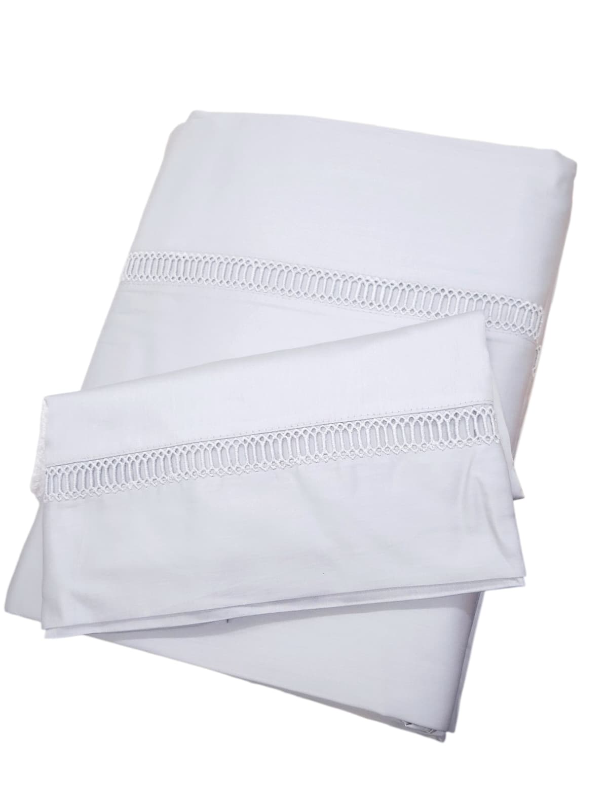 - Lençol de cima 2.40 x 2.90 m + Ajustável 1.60 x 2.00 m + 2 Fronhas 0.50 x 0.70 m