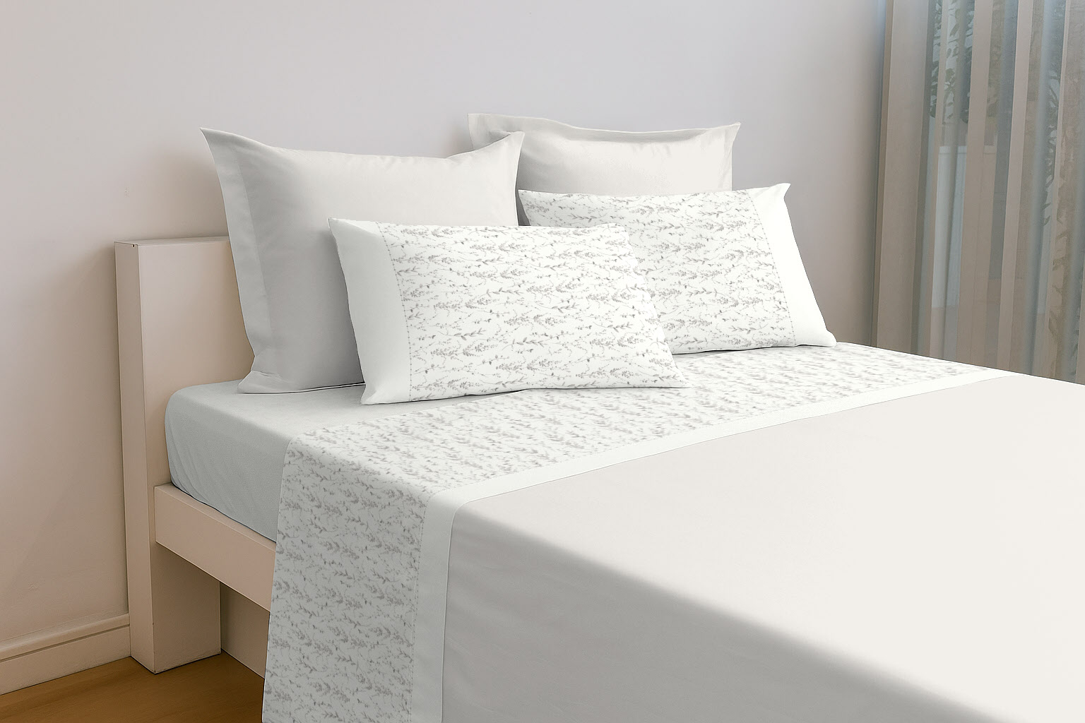 - Lençol de cima 2.60 x 2.80 m + Ajustável 1.80 x 2.00 m + 2 Fronhas 0.50 x 0.70 m