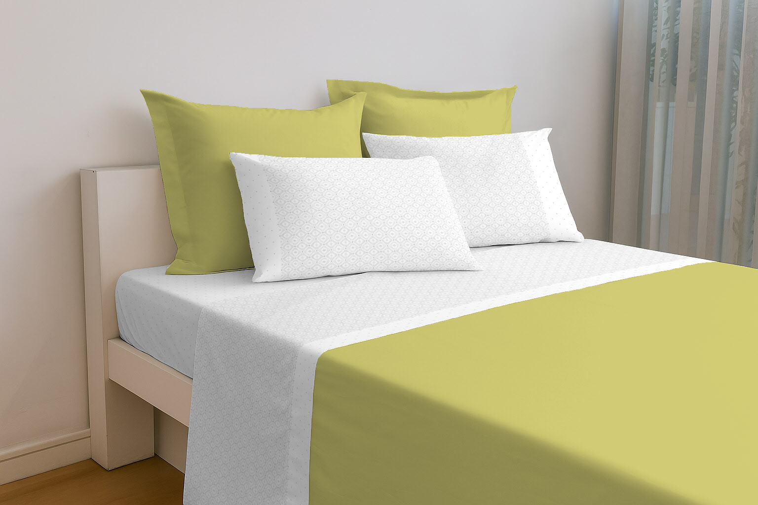 - Lençol de cima 2.20 x 2.80 m + Lençol de baixo 2.20 x 2.80 m + 2 Fronhas 0.50 x 0.70 m