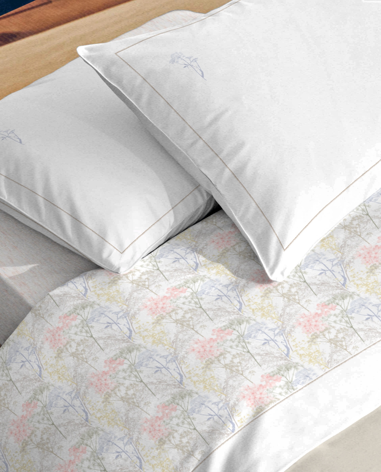 - Lençol de cima 2.40 x 2.80 m + Lençol de baixo 2.40 x 2.80 m + 2 Fronhas 0.50 x 0.70 m