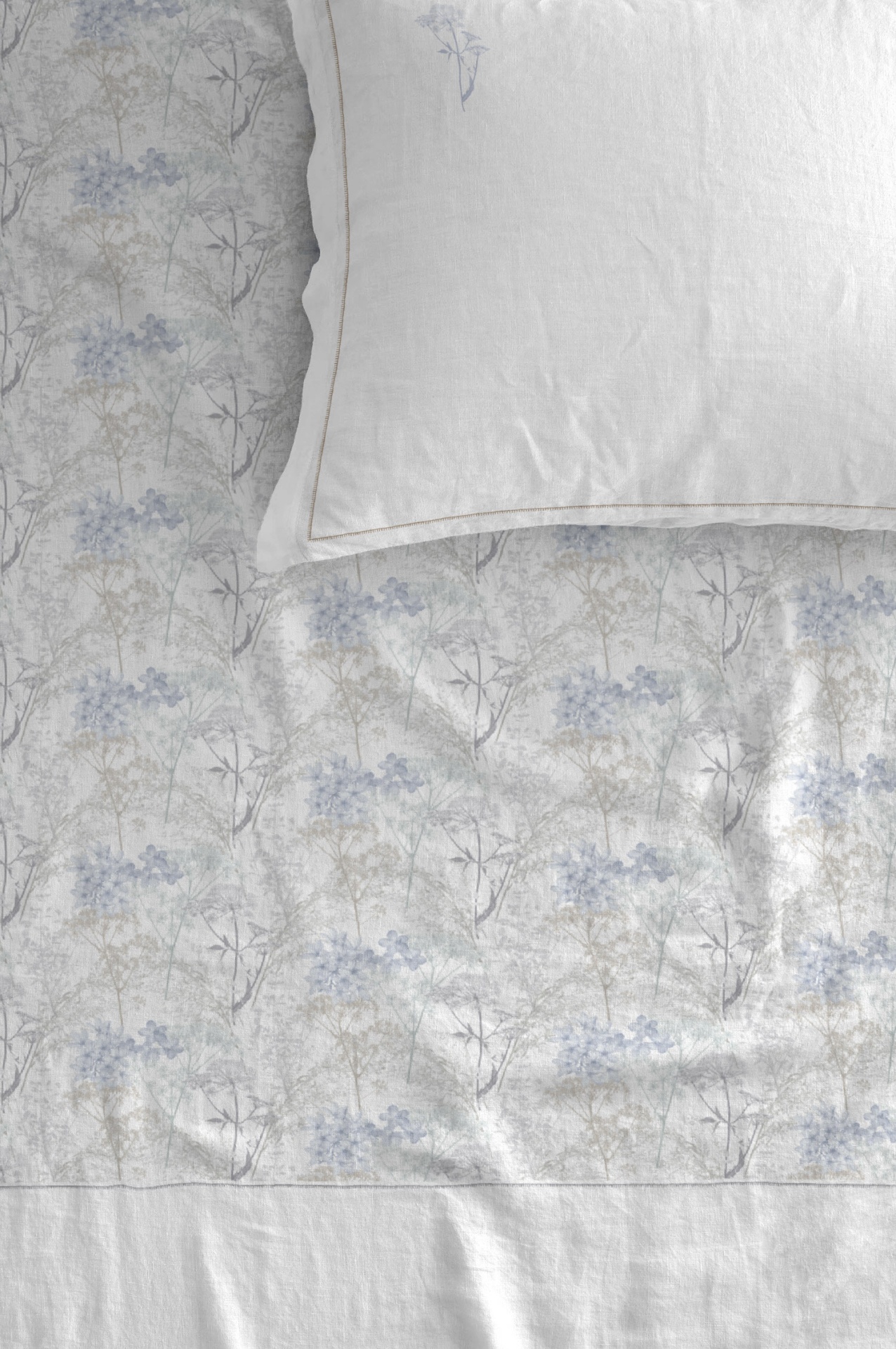 Estampado no lençol de baixo, lençol de cima e fronhas com desenho referente à natureza.