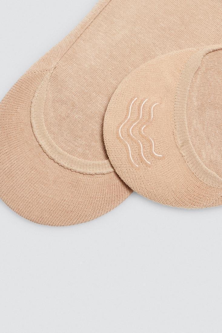 - Pack de 3 pares de meias unissexo, tanto para senhora como para homem. Estilo pezinho, invisível. Cor bege. Sem costura.